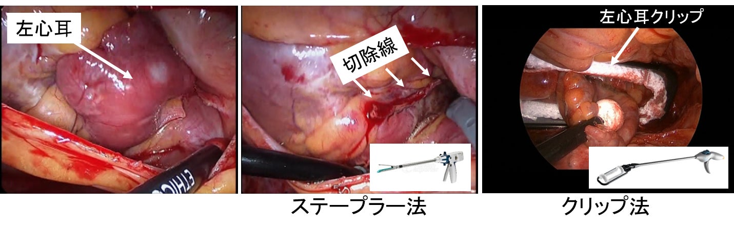 *写真A:上記②の術式「胸腔鏡下左心耳閉鎖術」で使用できる道具として、ステープラー法(根元で切る)とクリップ法(根元で挟む)の2種類があり、患部の状態によりどちらかを選択する。